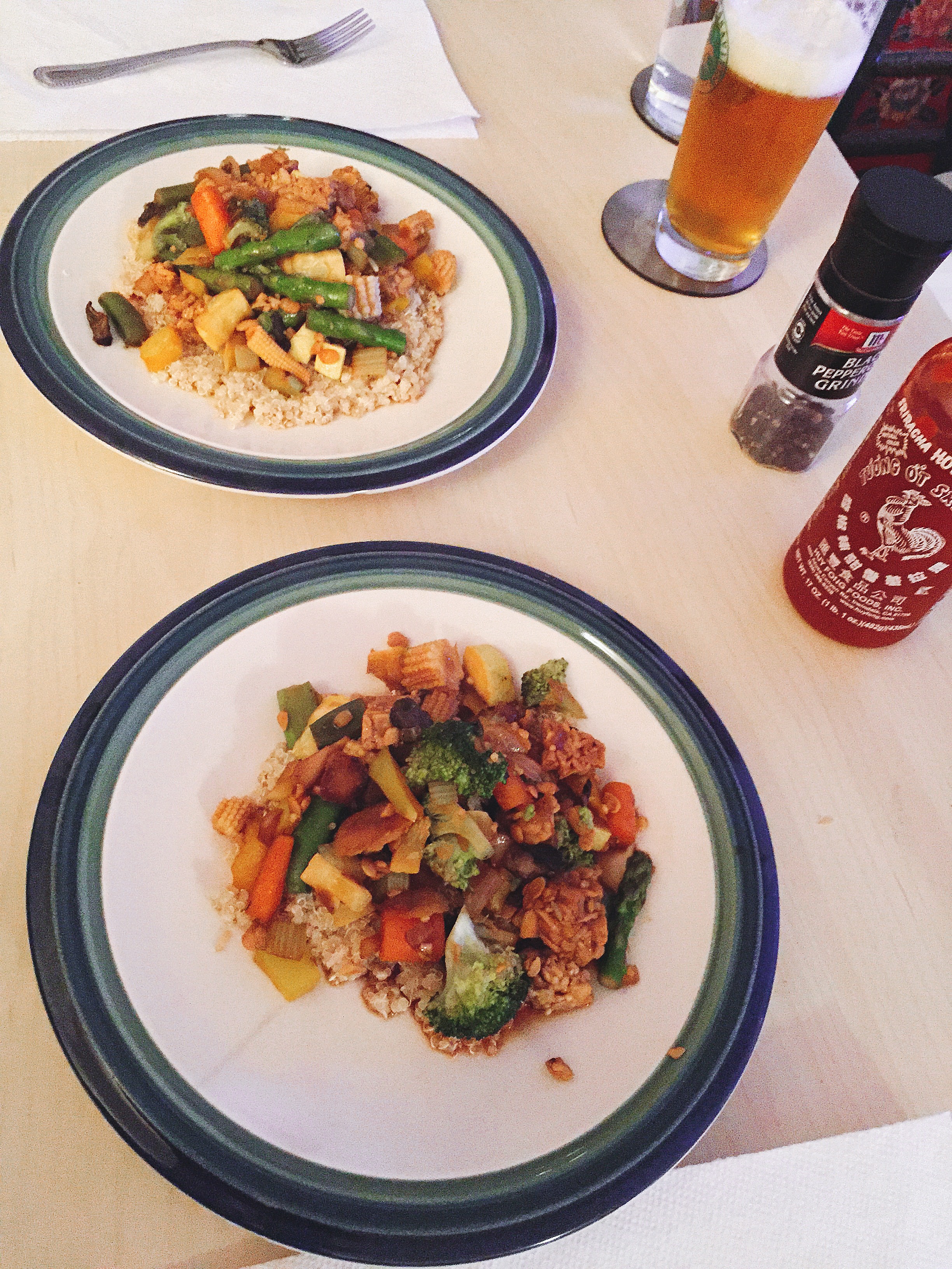 Here are the vegetables I used, feel free to mix it up! Also, this is the link to my previous stir fry post. The directions are the same for vegetables, but this time I used quinoa instead of noodles. Basically all you have to do is chop up the vegetables, and cook the quinoa, add the tempeh and sauce to cook with the vegetables and you’re good to go!