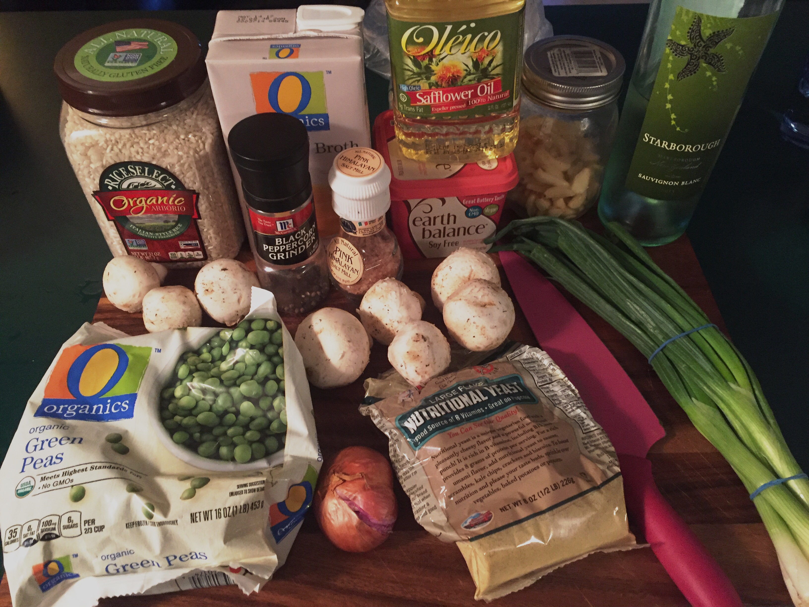 -Remove from heat. Add the frozen peas and nutritional yeast. Add salt and pepper to taste. Stir well. The heat from the risotto will warm the peas. Garnish with green onion and serve immediately