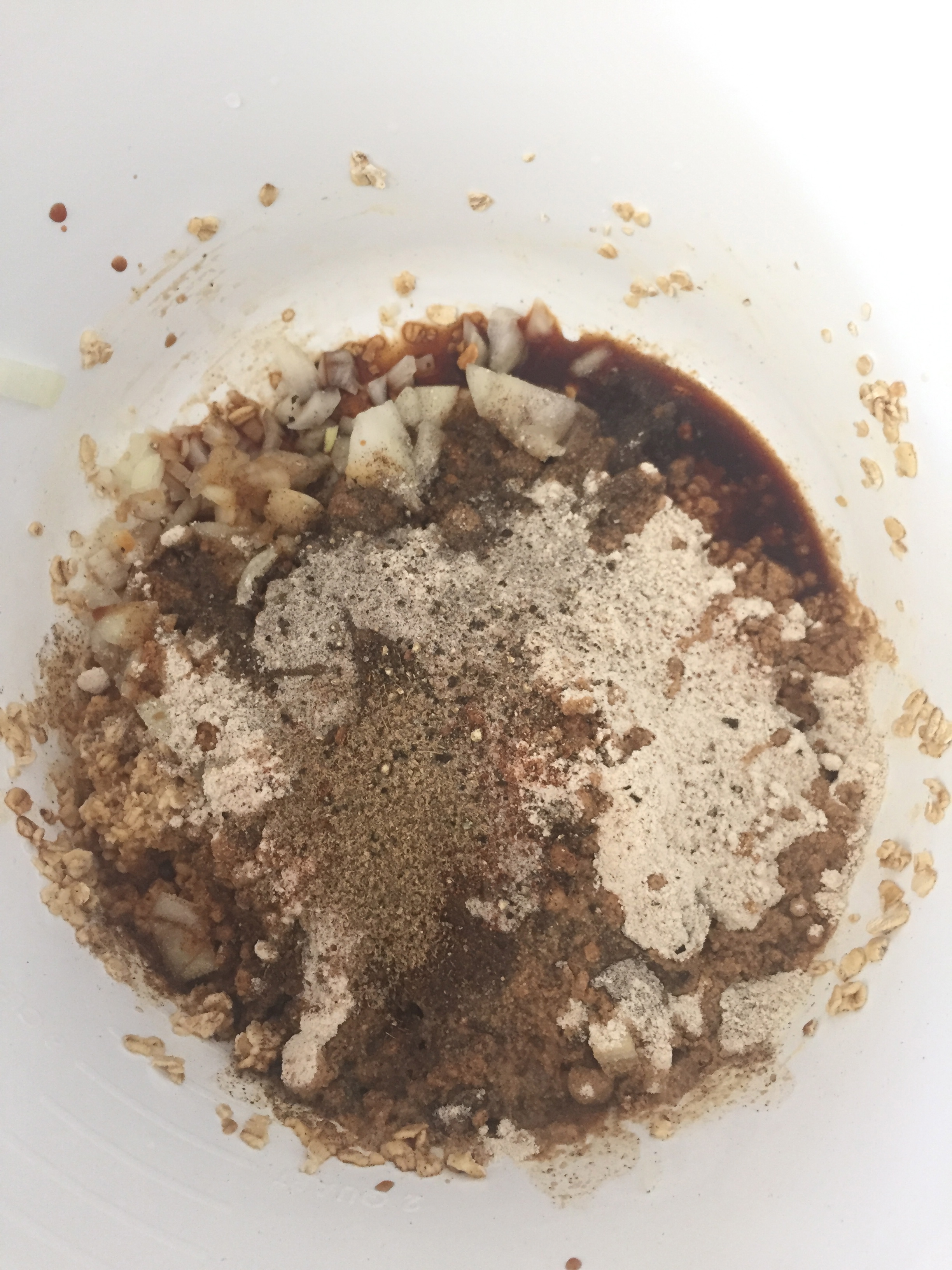 -Start by making the meatball batter. Combine the rolled oats with 1 Cup vegetable broth and let sit for a few minutes before adding in all the remaining ingredients for the meatballs. Mix well. Once well combined, shape the mixture into balls using wet hands — I probably wet my hands 100 times making these, the mixture is so sticky! — and place on a plate lined with parchment