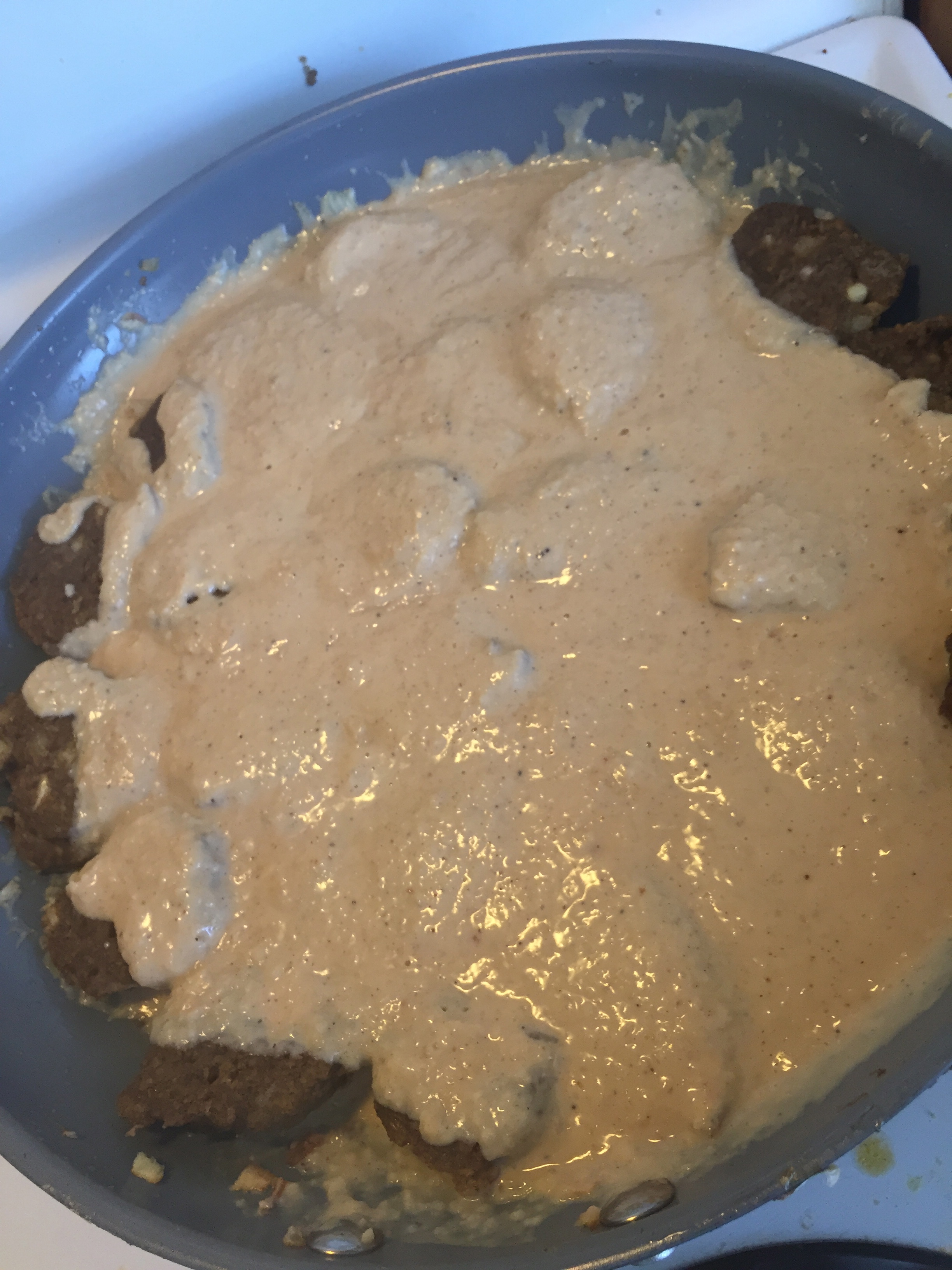 -Put the pan back on low heat and allow to simmer 5 – 10 minutes, so the sauce properly seeps into the meatballs. The sauce will thicken, so if you prefer a thinner version you can gradually add in more water until you are satisfied with the consistency. If you prefer crispier meatballs you can skip this step and serve the gravy on the side instead, which I will probably try next time