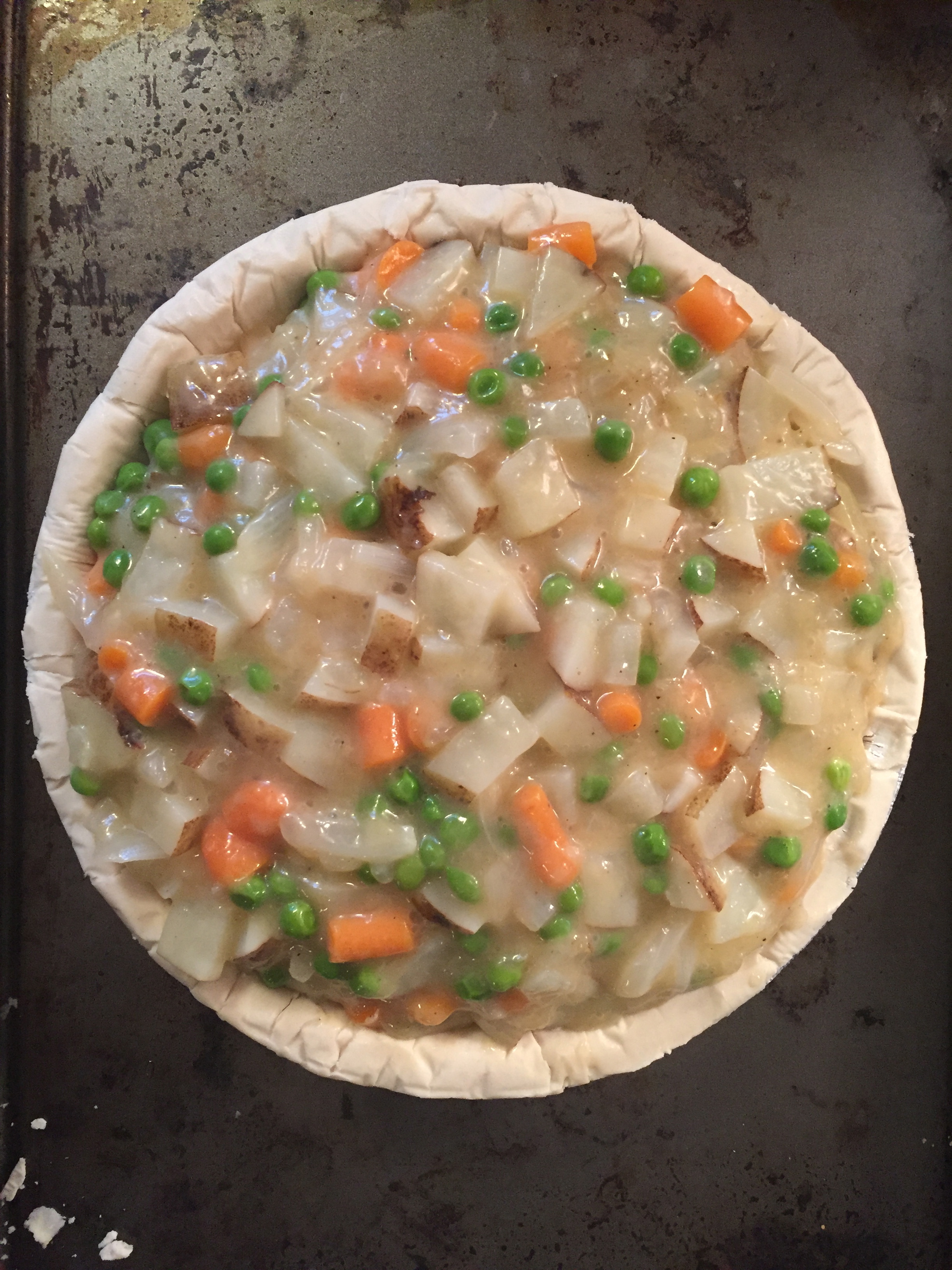 Well Sean has discovered his new favorite meal that I make (enchiladas, you’re old news) . . . it’s my Vegan Pot Pie. I have to admit, it was really good, and filling!